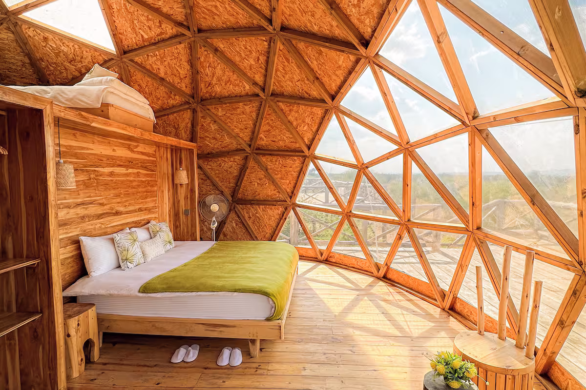 Kuoom Serengeti is a luxury eco‑lodge located just 15 minutes from the Ikoma Gate of Serengeti National Park, offering elevated bubble‑style domes with panoramic views of the savannah. Perfectly blending comfort and sustainability, the lodge features solar‑powered amenities, locally sourced cuisine, and expertly guided safari and stargazing experiences. With personalized service, peaceful surroundings, and seamless access to wildlife, Kuoom delivers a truly immersive Serengeti adventure.