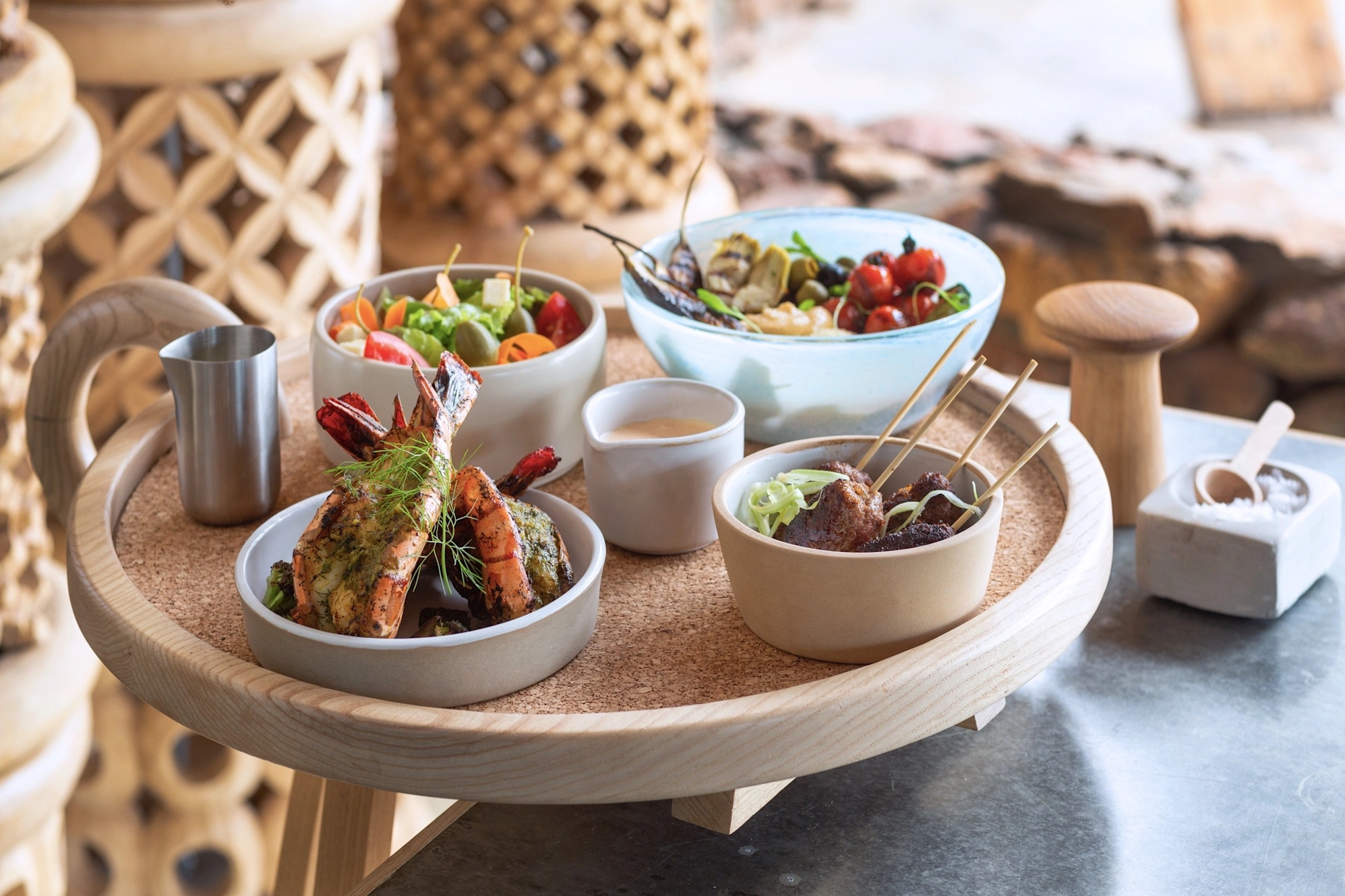 Vast outdoor decks and multiple airy enclaves allow for intimate dining and drinks, while the café-style bar at the heart of the lodge hums with a subtle sparkle spilling over to the pool area and firepit, and making for magical evenings under starlit skies.